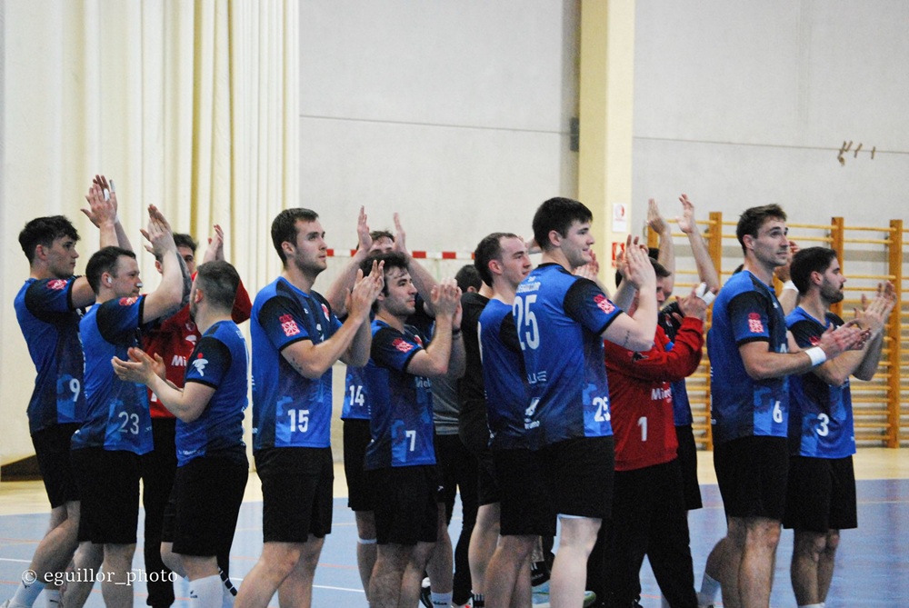 Victoria del Uharte en casa en su último partido de liga en casa ante la afición. Un partido complicado y emotivo, quizás por ello hubo tantos altibajos durante el partido, habiendo rachas buenas alternadas con otras peores, lo que supuso que el marcador fuera en favor de un equipo y otro de manera continuada. El equipo empezó algo nervioso, con bastantes fallos de cada a portería en lanzamientos claros y eso propicio que el rival con un buen ataque (junto con una mejorable defensa por parte del Uharte) hizo que se pusieran por delante en el marcador. Nuestros chicos tiraron de su fortaleza y al final del primer tiempo voltearon el marcador, con un gran parcial, y ganando de dos goles tras la primera parte. La segunda parte se empezó con una mejor actitud que la primera, ampliando la ventaja a 5 goles pero enseguida vino una mala racha del equipo y lo aprovecho muy bien el rival quien consiguió darle la vuelta al partido y ponerse por delante. El equipo no admitió este resultado y sacó su garra que les caracteriza y volvieron a poner sobre el campo el ímpetu que hacía falta para volver a ponerse por delante en el marcador y finalizar el partido 3 goles arriba. Un partido importante sobre todo por despedir a unos cuantos jugadores que llevan mucho tiempo en nuestro Club y algunos que con menos tiempo han conseguido tener otras opciones deportivas en categorías superiores para la próxima temporada: Unai Galán y tres jugadores que llevan muchísimos años en el Club y que ya se retiran que son: Diego Pandilla, Mikel Etxeberria y Saúl Elizondo. La parte negativa de este encuentro fue la lesión de Gorka Metaxas, esperamos que el alcance de la lesión sea lo menos posible y queremos desearle una pronta recuperación y mucho ánimo para poder volverle a ver en la pista lo antes posible. En resumen, agradecer a todos los jugadores que abandona el CB Uharte los años dedicados al Club y darles la enhorabuena a todos por una nueva temporada donde el Club va a acabar en los puestos altos de la tabla clasificatoria y esperemos que con las nuevas incorporaciones (sobre todo esos jóvenes que tienen que dar ese paso adelante) sigamos esta misma línea.